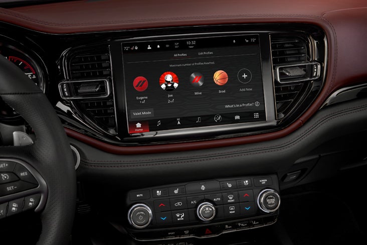 The more advanced UConnect5 adds TomTom navigation and SiriusXM Radio connectivity. Unique to the Dodge Durango, the Uconnect5 screen has black and red accents. You can utilize Alexa with the Uconnect LTE Wi-Fi package.