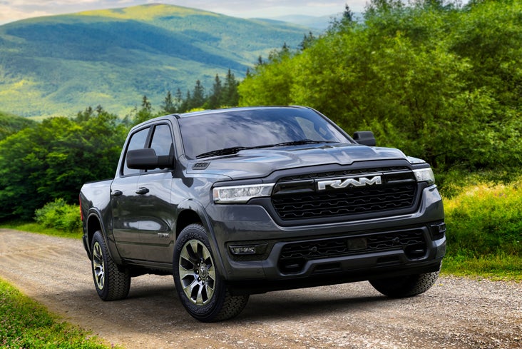 Ram trucks offer a choice of powerful engines that combine traditional muscle with modern efficiency. The 3.6-liter eTorque Pentastar V-6, with mild hybrid technology, generates 305 horsepower and 271 lb-ft of torque. It handles payloads of up to 2,300 pounds.